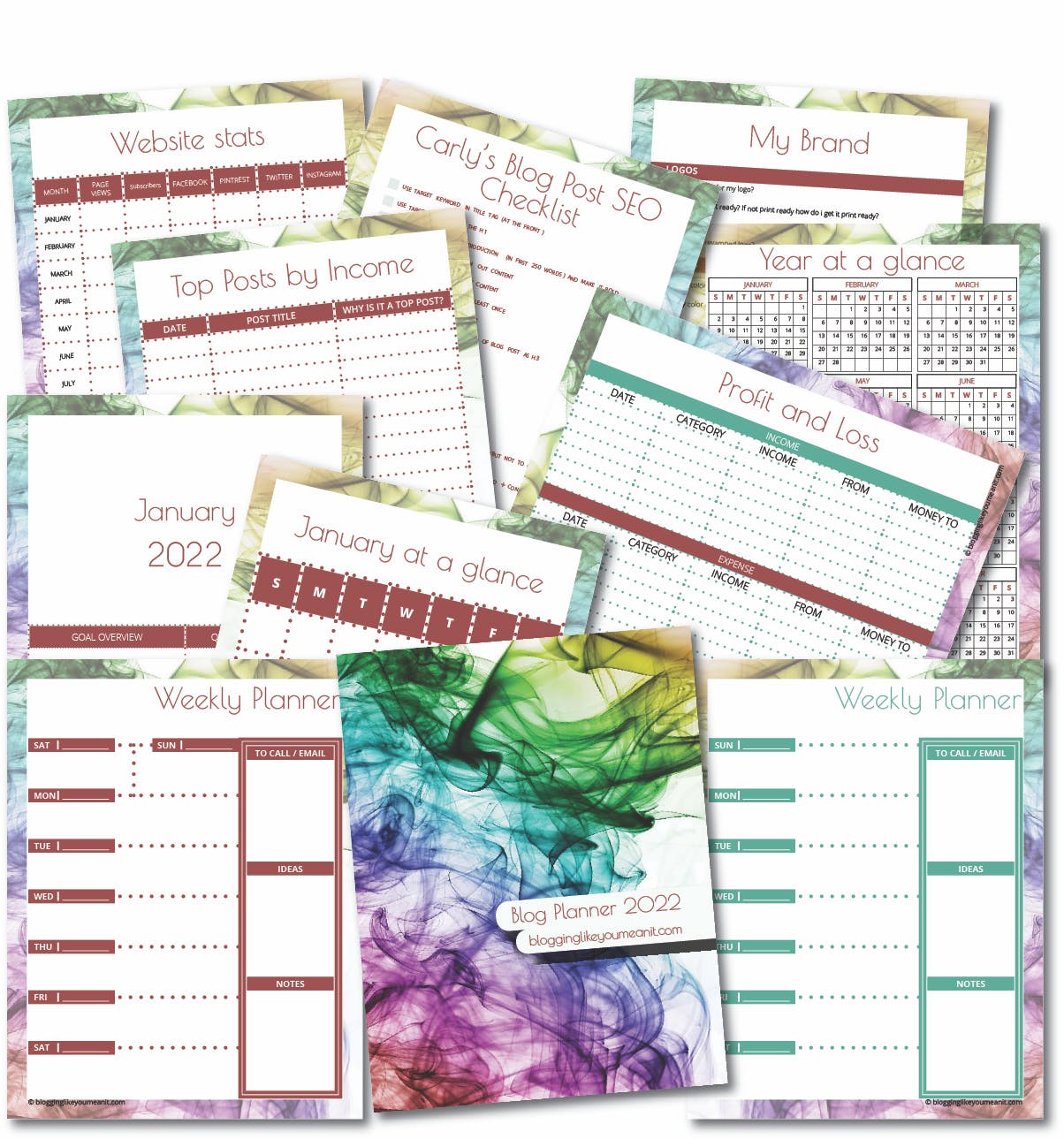 This gorgeous printable blog planner comes in TWO designs (you get both with your purchase) and includes